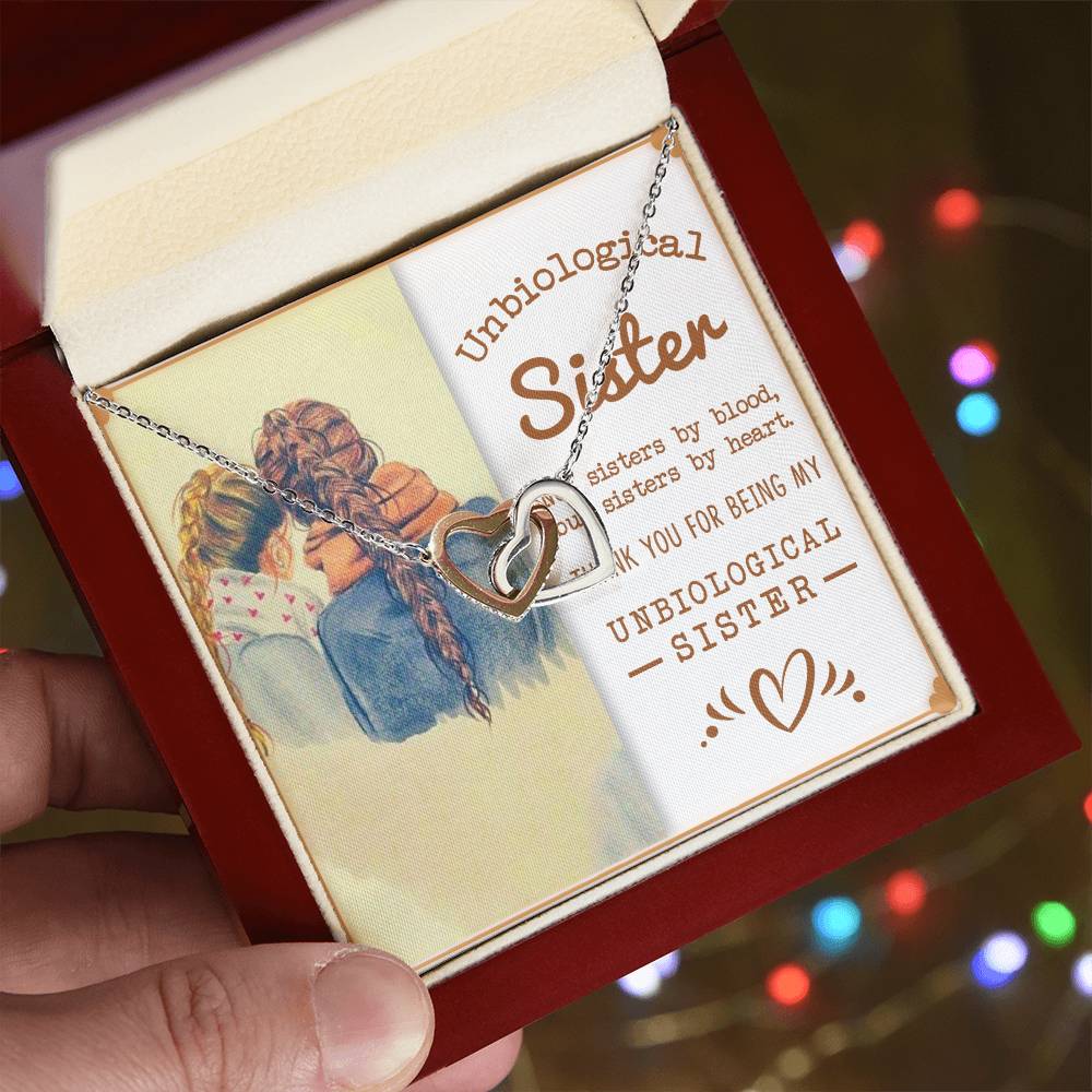 To My Unbiological Sister, Sisters By Heart - Interlocking Hearts Necklace